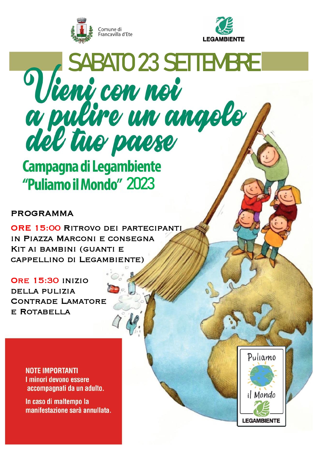VIENI CON NOI A PULIRE UN ANGOLO DEL TUO PAESE - SABATO 23 SETTEMBRE 2023