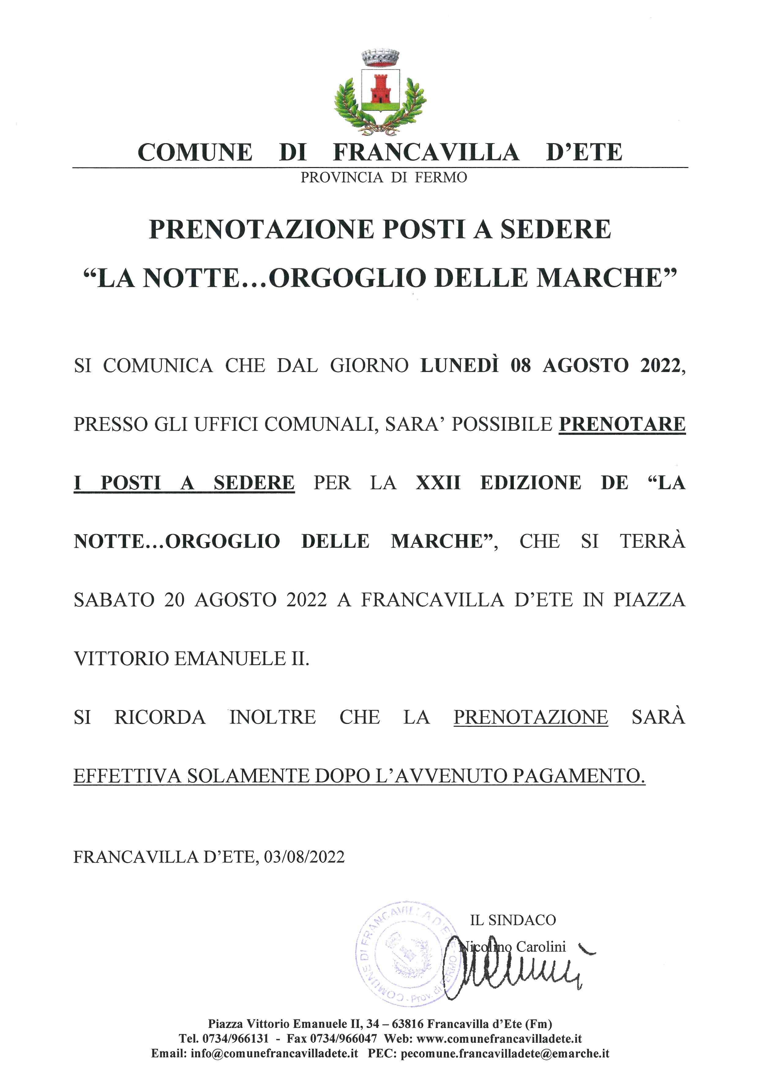 PRENOTAZIONE POSTI A SEDERE "LA NOTTE...ORGOGLIO DELLE MARCHE"