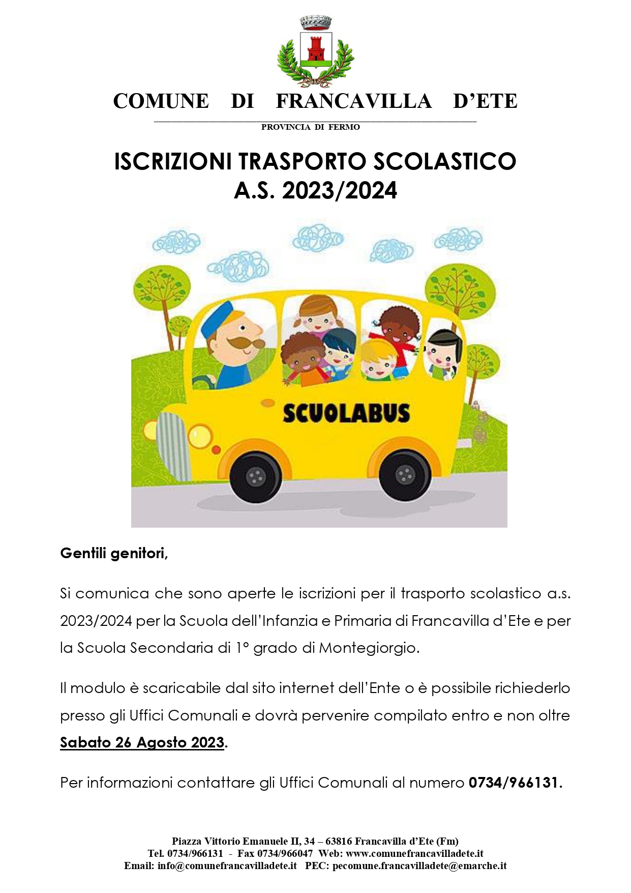 ISCRIZIONI TRASPORTO SCOLASTICO A.S. 2023/2024