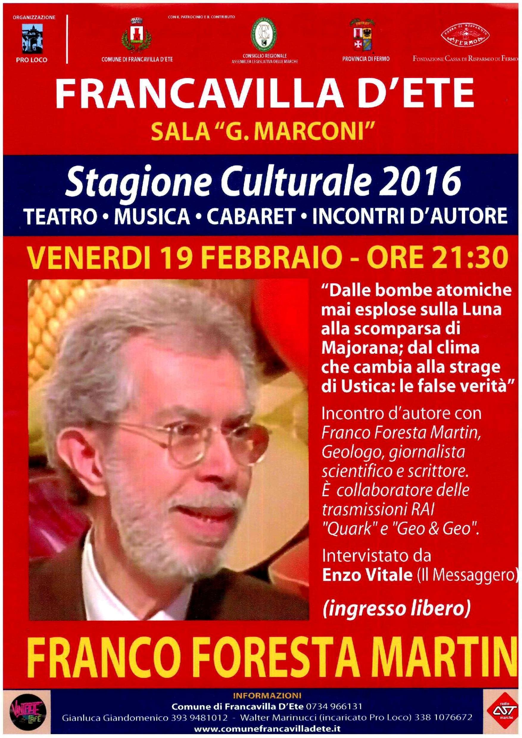 A causa di un improvviso impedimento del giornalista FRANCO FORESTA MARTIN, l'incontro d'autore previsto per venerdì 19 Febbraio 2016 è rinviato a VENERDì 11 MARZO 2016.