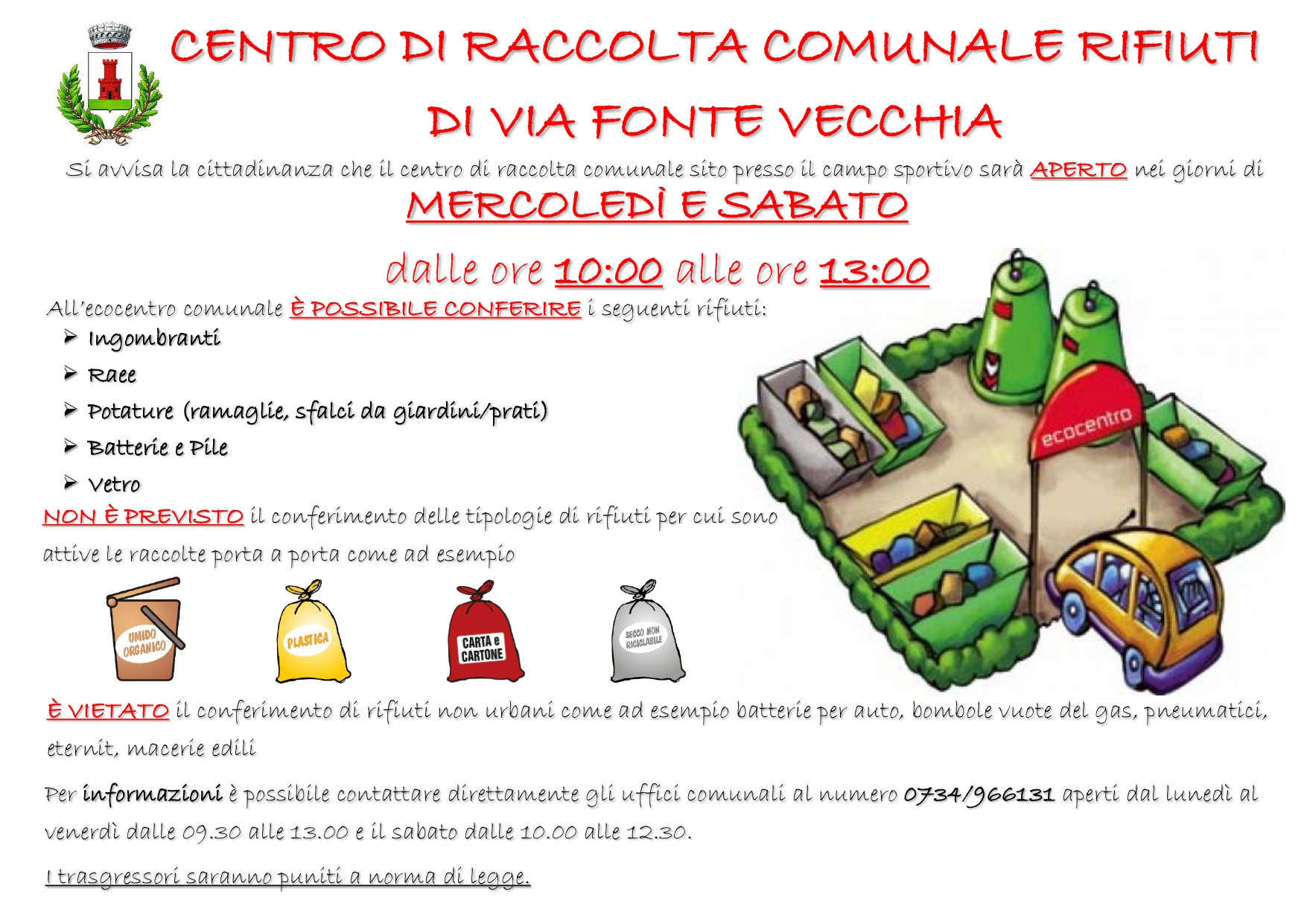 CENTRO DI RACCOLTA COMUNALE RIFIUTI DI VIA FONTE VECCHIA - VARIAZIONE ORARI DI APERTURA