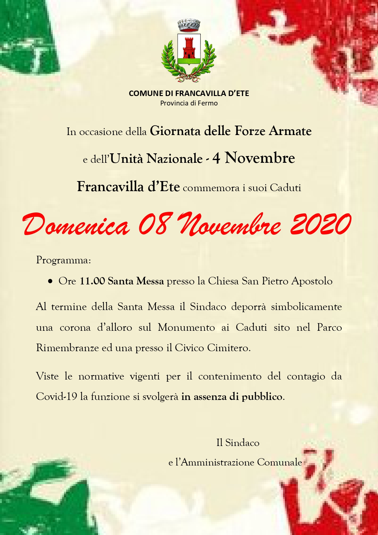 GIORNATA DELLE FORZE ARMATE E DELL'UNITA' NAZIONALE - 4 NOVEMBRE 2020