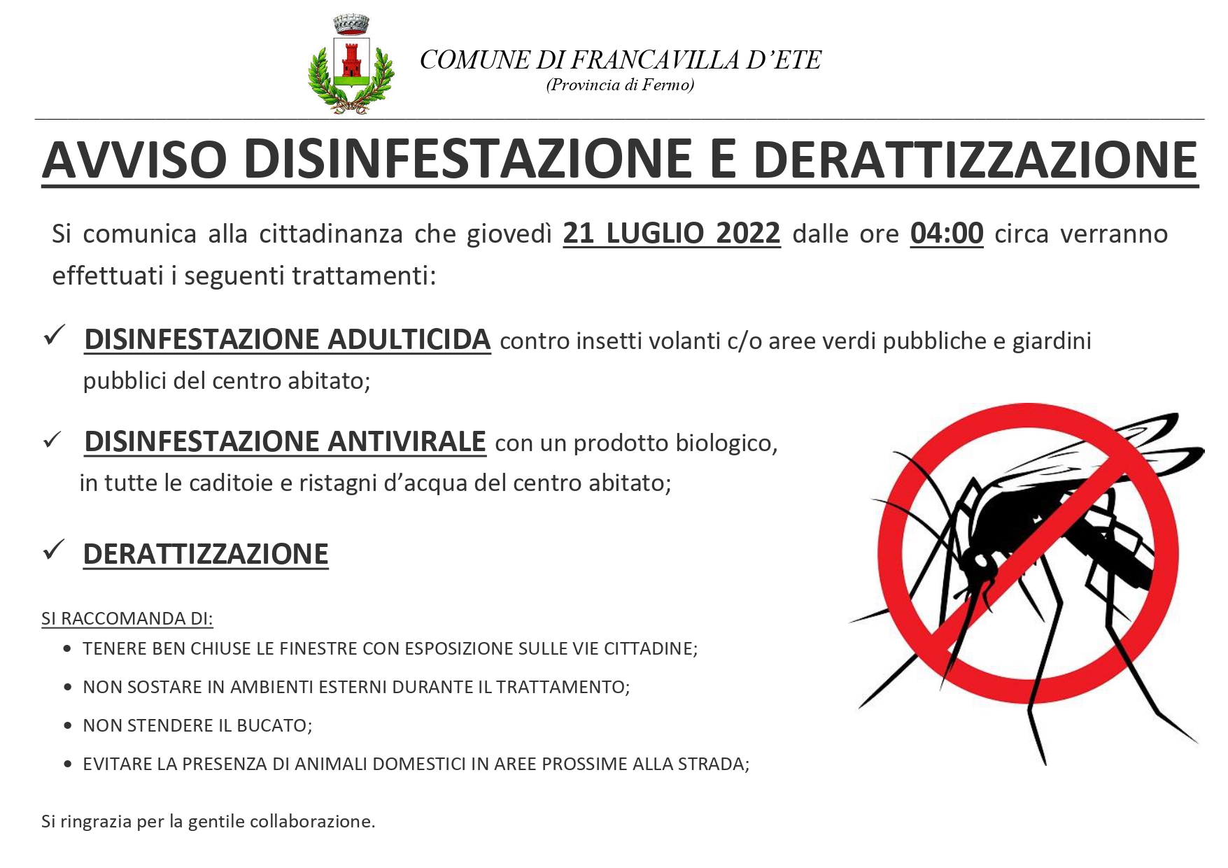 AVVISO DISINFESTAZIONE E DERATTIZZAZIONE