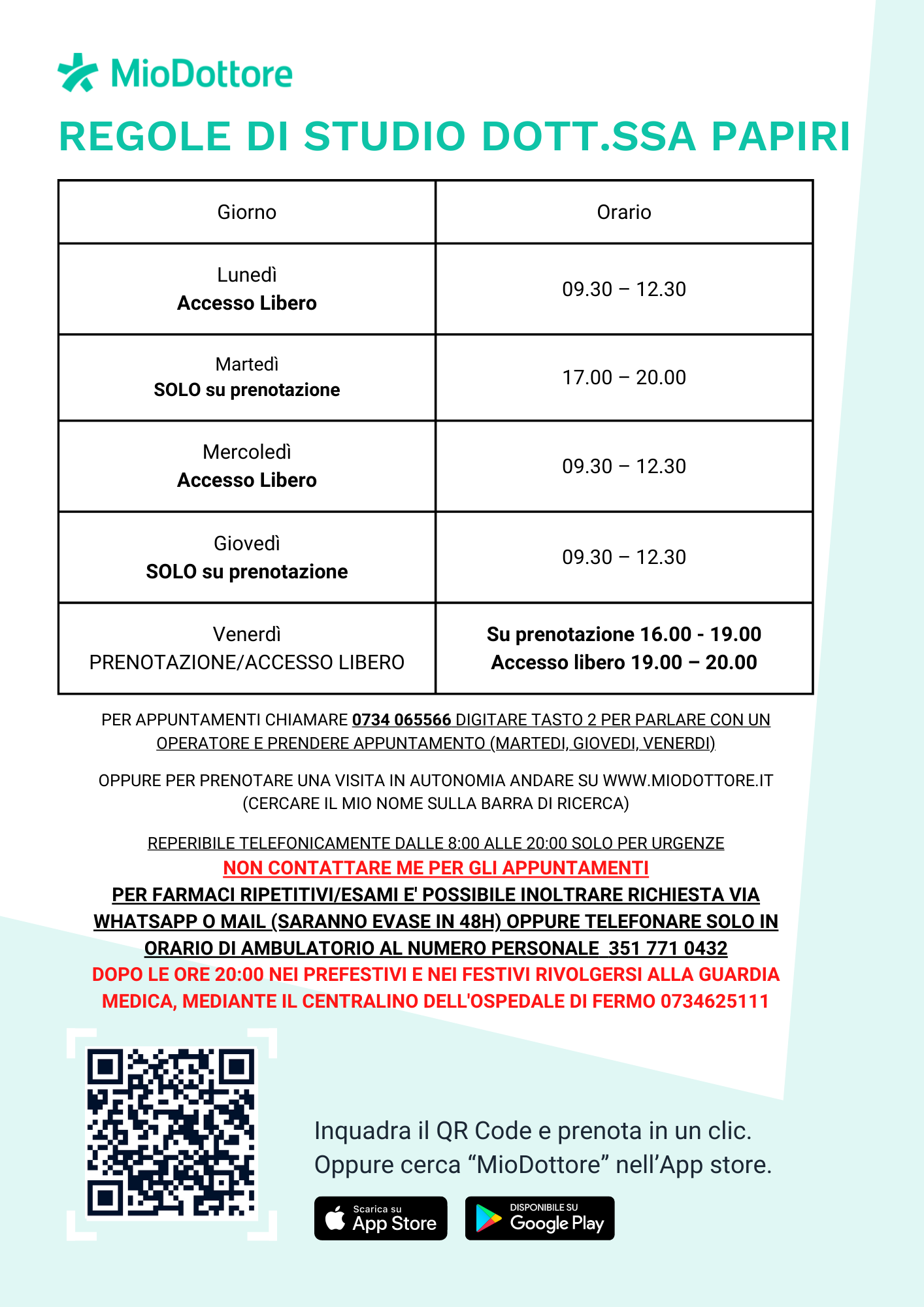 ORARI AGGIORNATI DOTT.SSA PAPIRI SARA