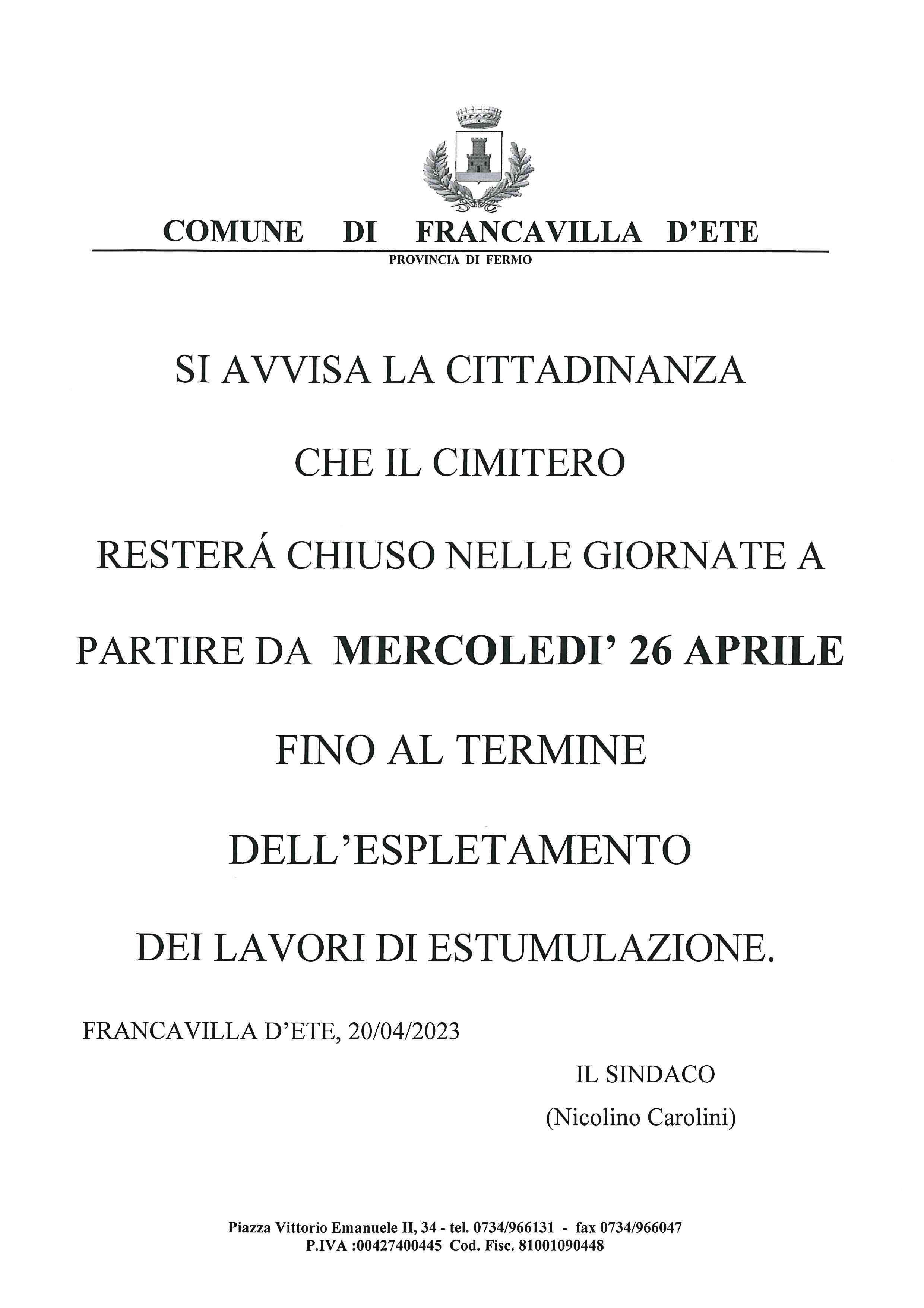 CHIUSURA CIVICO CIMITERO