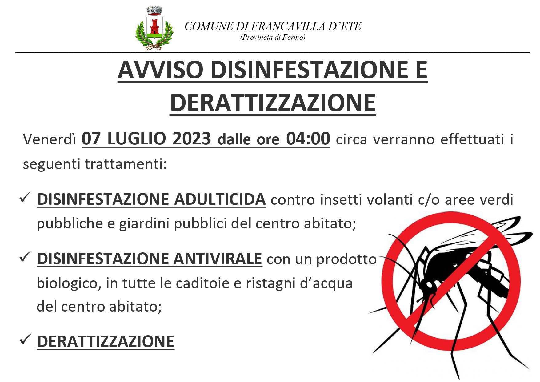 AVVISO DISINFESTAZIONE E DERATTIZZAZIONE