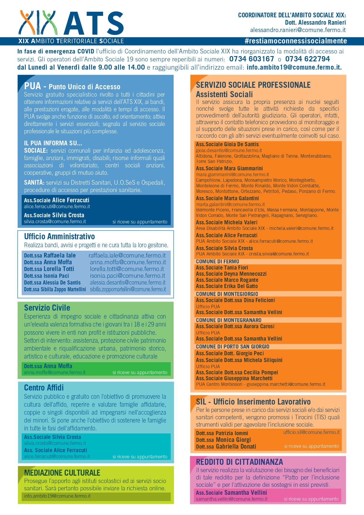 SERVIZI ATS XIX - PERIODO EMERGENZA SANITARIA