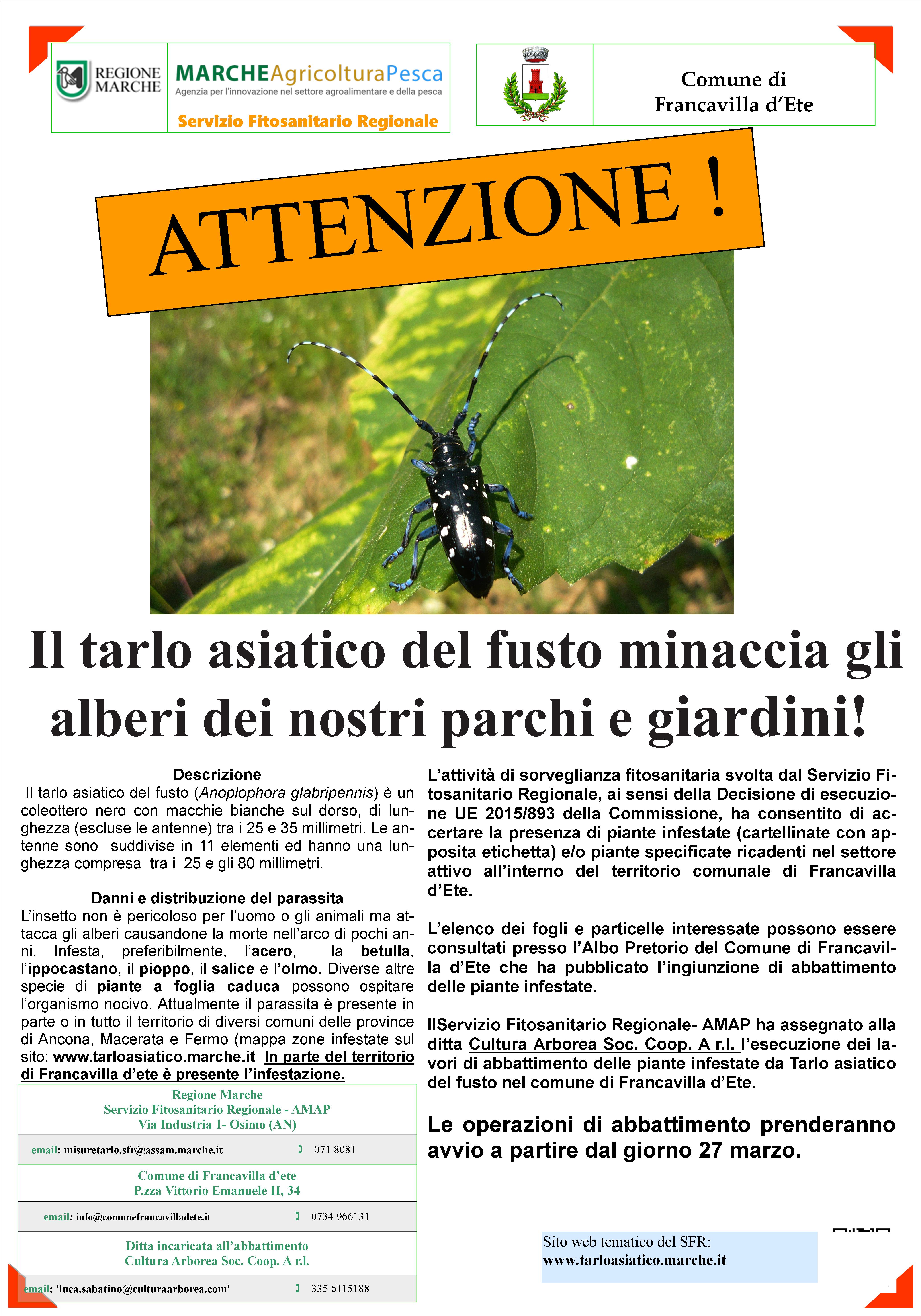 INIZIO LAVORI DI ABBATTIMENTO PIANTE INFESTATE DAL TARLO ASIATICO