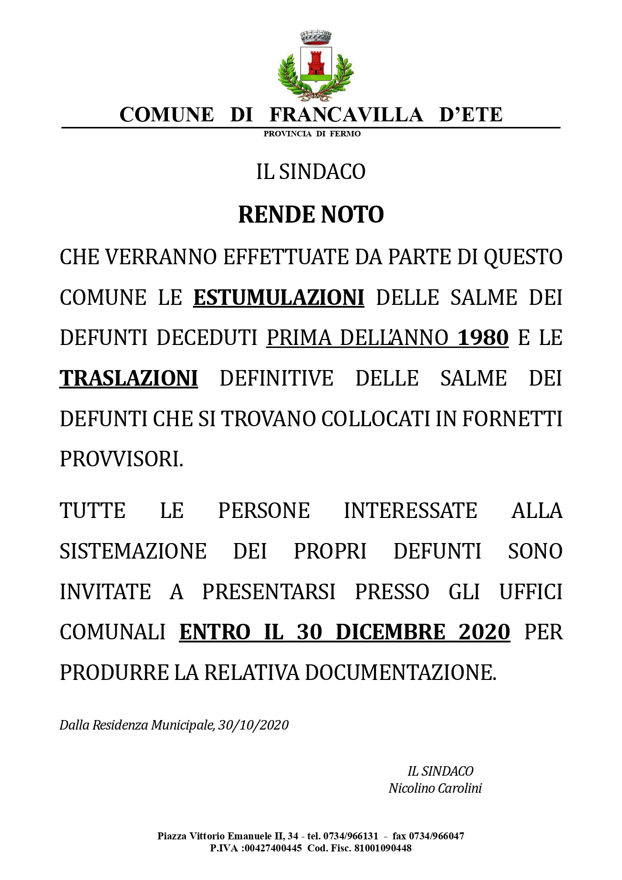 AVVISO ESTUMULAZIONI E TRASLAZIONI