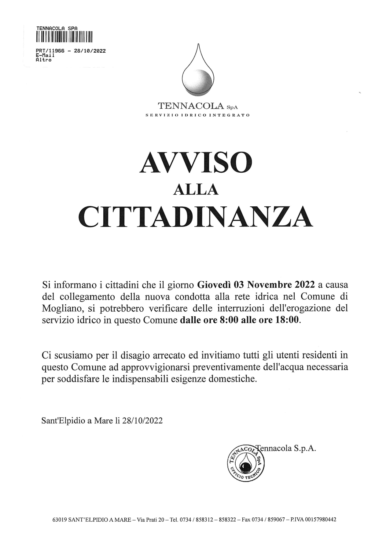 POSSIBILITA' DI INTERRUZIONI DELL'EROGAZIONE DEL SERVIZIO IDRICO