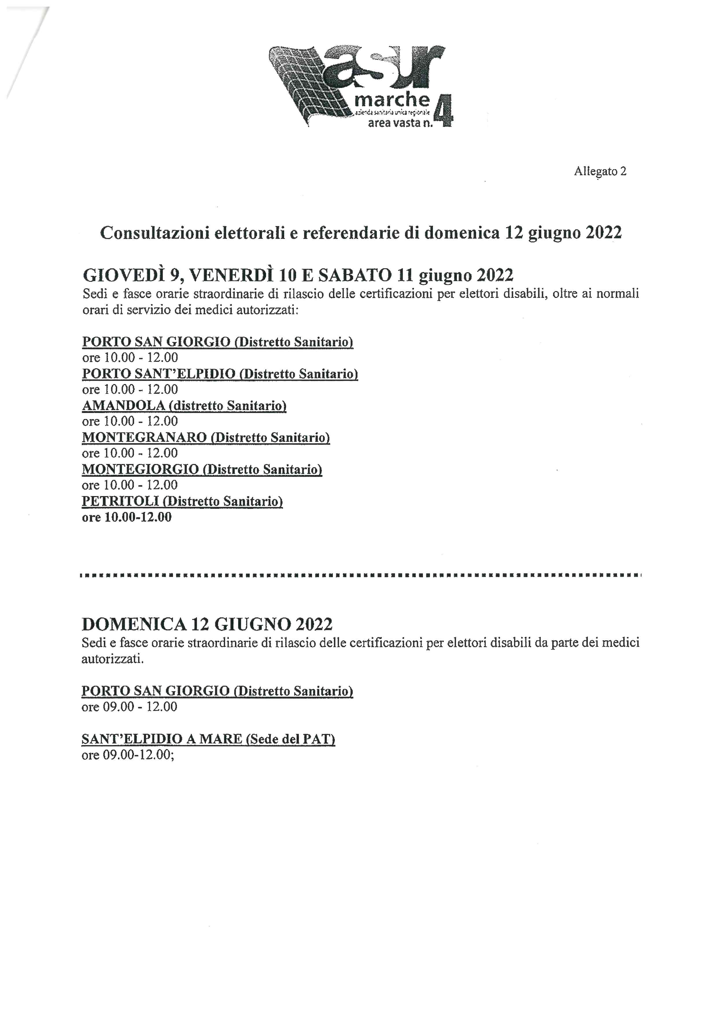RILASCIO DI CERTIFICATI PER L'ESERCIZIO DI VOTO DA PARTE DI PERSONE DISABILI. CALENDARIO