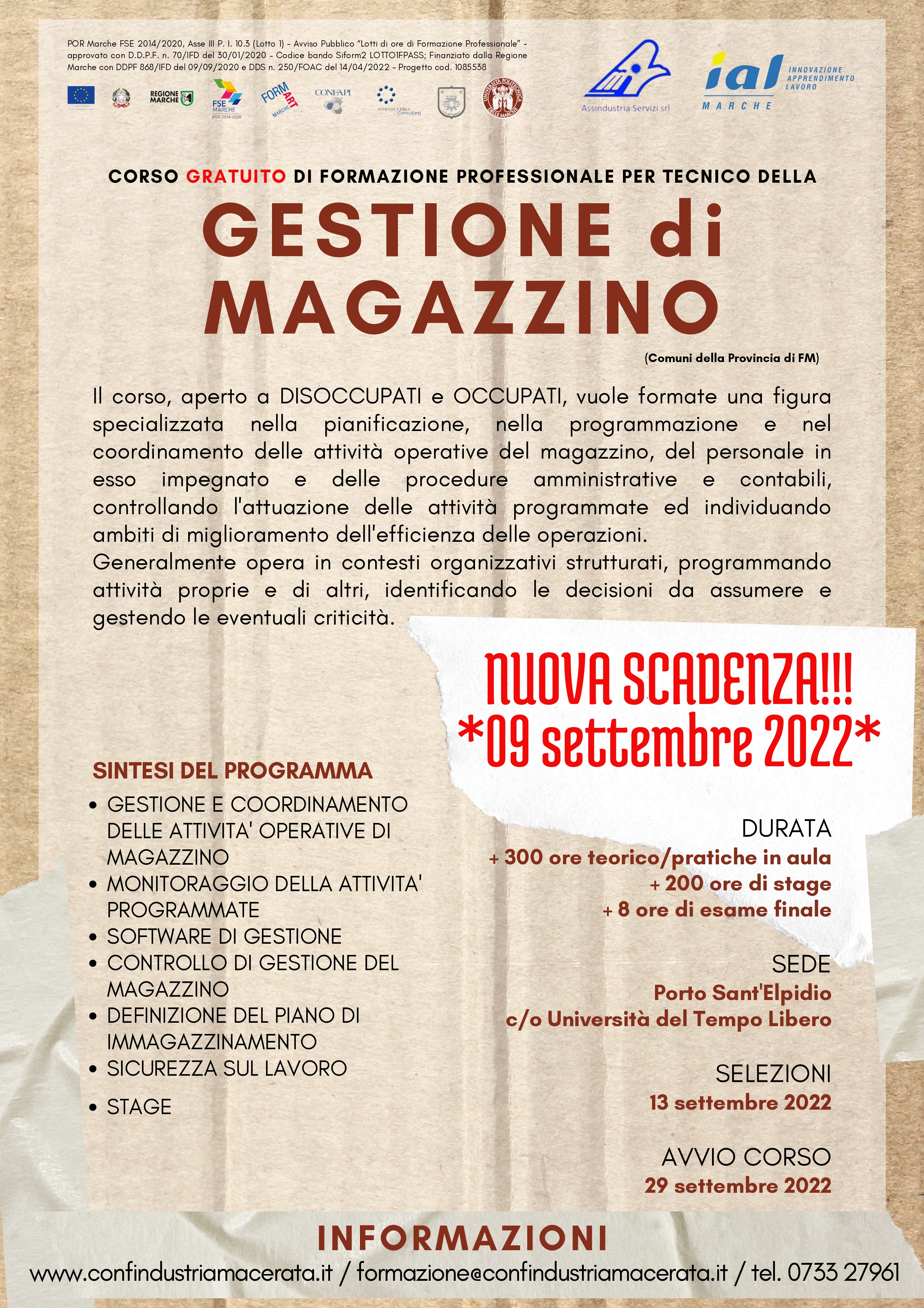 Corso FSE "Tecnico della GESTIONE DI MAGAZZINO"