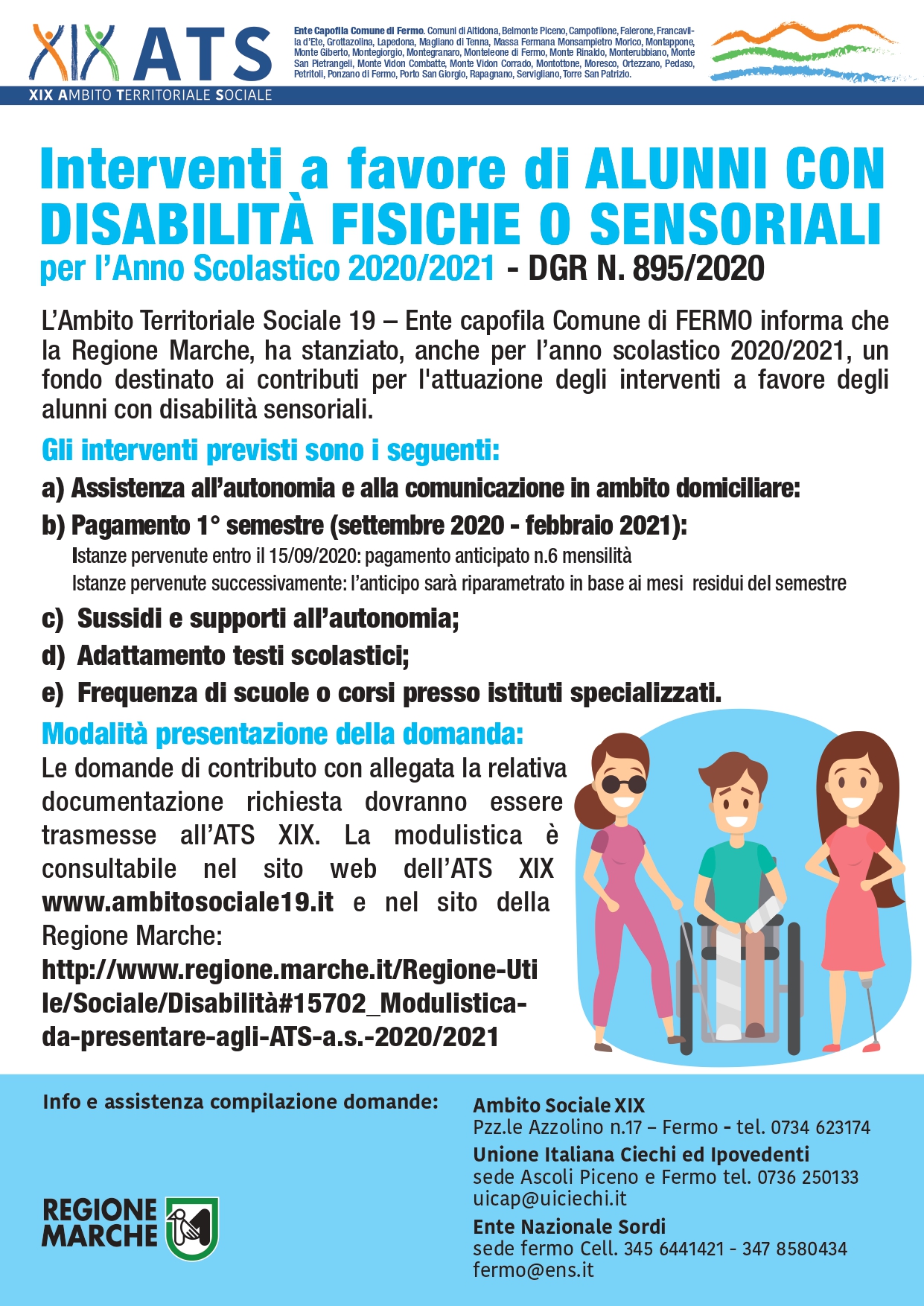 INTERVENTI A FAVORE DI ALUNNI CON DISABILITA' FISICHE O SENSORIALI PER L'ANNO SCOLASTICO 2020-2021